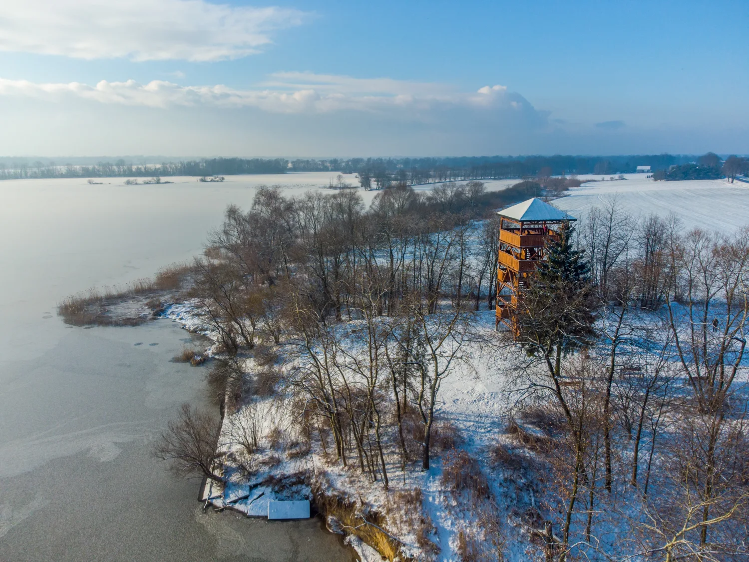 Z wieży bardzo ładnie widać jezioro, sztuczną ptasią wyspę (tzw. Ptasią Beczkę, która jest ostoją m.in. dla śmieszek i rybitw rzecznych), a w dniach lepszej widoczności także niedalekie już góry czy miasto Bielsko. Niestety my tym razem nie zobaczyliśmy tych pięknych beskidzkich kształtów, ale za to złapaliśmy sporo tak limitowanego nam ostatnio słońca i widzieliśmy wiele ptaków - przed naszymi oczami przelatywały m.in. czaple białe, a ogromne stado dzikich gęsi, które poderwało się do lotu, dało niezapomniany koncert... Szczególnie wiosną będzie się tu sporo działo - w sezonie lęgowym kiedy ptaki będą zakładać gniazda z pewnością będzie tu głośno ;)