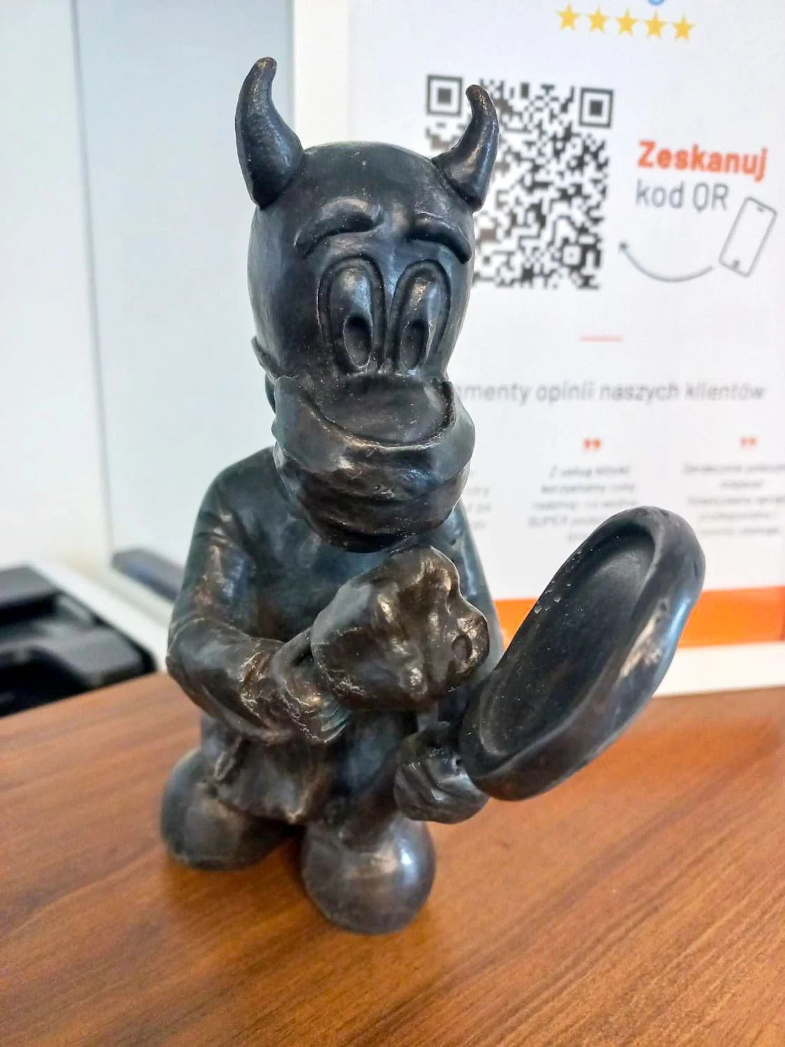 JORGUŚ - bebok, który próbuje wymknąć się z „Atelier z akwarelami” - znajdziecie go na skrzyżowaniu ulic Czechowa i Odrowążów na Nikiszowcu