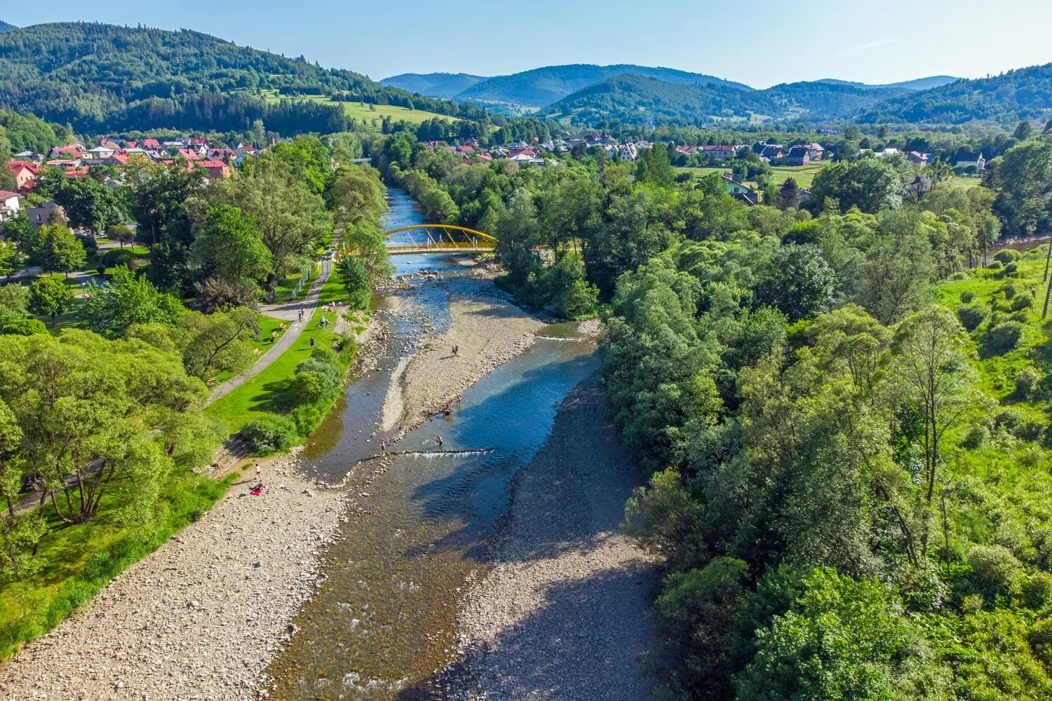 - sąsiedztwo rzeki która zachęca do odpoczynku na kamienistych plażach szczególnie w upalne dni